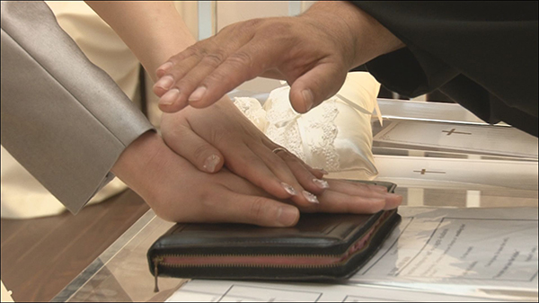 「聖書の上に手を重ねて下さい。 お祈りを致します。」